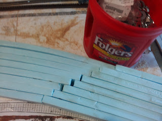 I still have enough of the 4' x 8' foam sheet to make another 16 splines. That's enough for 16' of four track main. This should get me up to Tunnel Hill. The entire process goes quite quickly, although cutting the splines actually seems to take longer than using them.