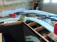 This time the spline is flat rather than cut to a slope. It's much easier to level out and glue up. One of the issues with cutting a grade into the spline was the "offset" that occurs because of curves...