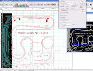 Just about now a part of my brain wakes up. It's where I keep all that stuff I thought I had forgotten, the dusty old closet as it were, of my consciousness. I can use a CAD program! It works with plotters, right? Lets see...All I have to do is export my track plan from the model railroad design software and import it into the CAD program. Piece of cake, used to do it all the time. So I open up said model railroad design software and click the export button. I can export it to a DXF (Drawing Exchange File) format. The CAD program can read DXF files...I'm good to go. The computer makes those sounds computers do and Voila! A DXF file appears!