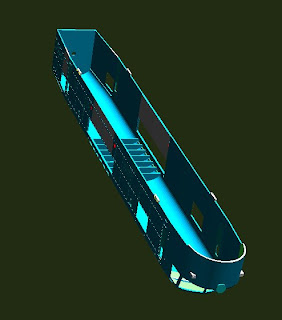 Right now I'm waiting on 3D Canvas to munch it's way through the translated file. I'm trying to see if I can "solidify" the model using the utilities in 3DC. It's taking forever, probably owing to the complexity of this beast. With almost 61000 Vertices and about 92000 polygons it's the most detailed model I've ever made. Train Simulator doesn't really tolerate complex objects. As a result I had to learn how to do things in the simplest way possible. This is exactly the opposite.
