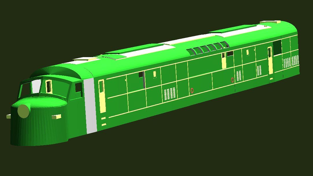The upshot of all this is that now on another tangent. I'm obsessed with the centipede model. As soon as I got the e-mail I started reworking the shape. I added (subtracted?) material from the inside. This made me realize I could now add window openings. While I was doing that I realized what has always bothered me about the appearance of the nose. Doesn't look "babyfaced" to me. Then I saw that I had rounded the top of the nose too much so I changed that. This meant I had to change the rest of the nose to suit. Correcting the nose led to changing the cowling and windshield which in turn affected the forward sides. Then I added the side window opening in the cab, etc and so forth. I went whole hog and created the actual model I want to print...